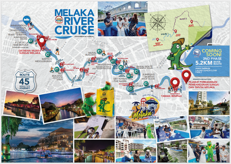 Purchase your ticket at the Spice Garden Jetty or Melaka River Square Jetty. Hop on our boats and discover awe-inspiring sights of cityscapes during your 45-minute journey such as:
