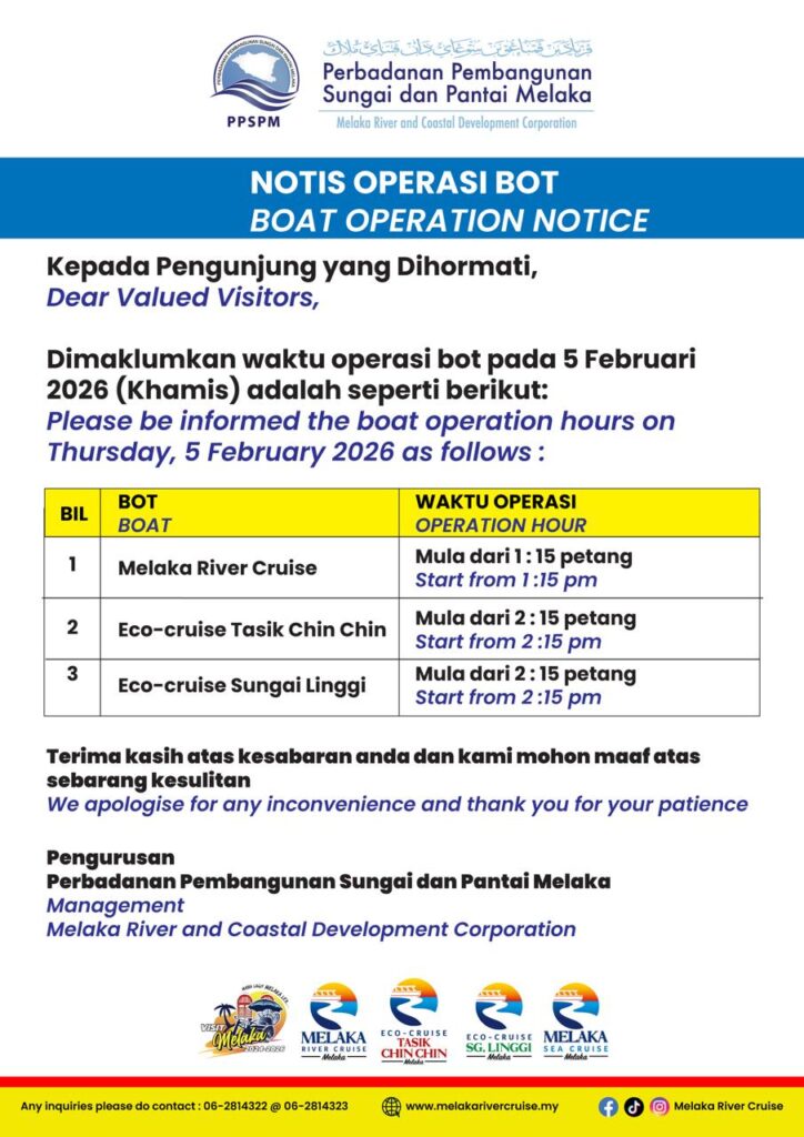 Unlimited ride for one day and you can stop at any 14 jetties along the Melaka River.